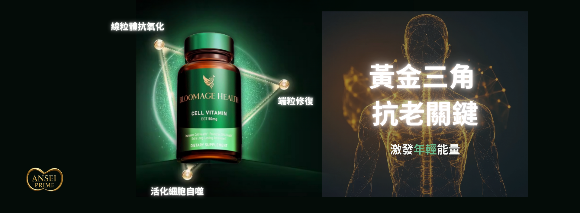 ANSEI PRIME 頂級長壽配方。由科學引導的次世代細胞養護新習慣。